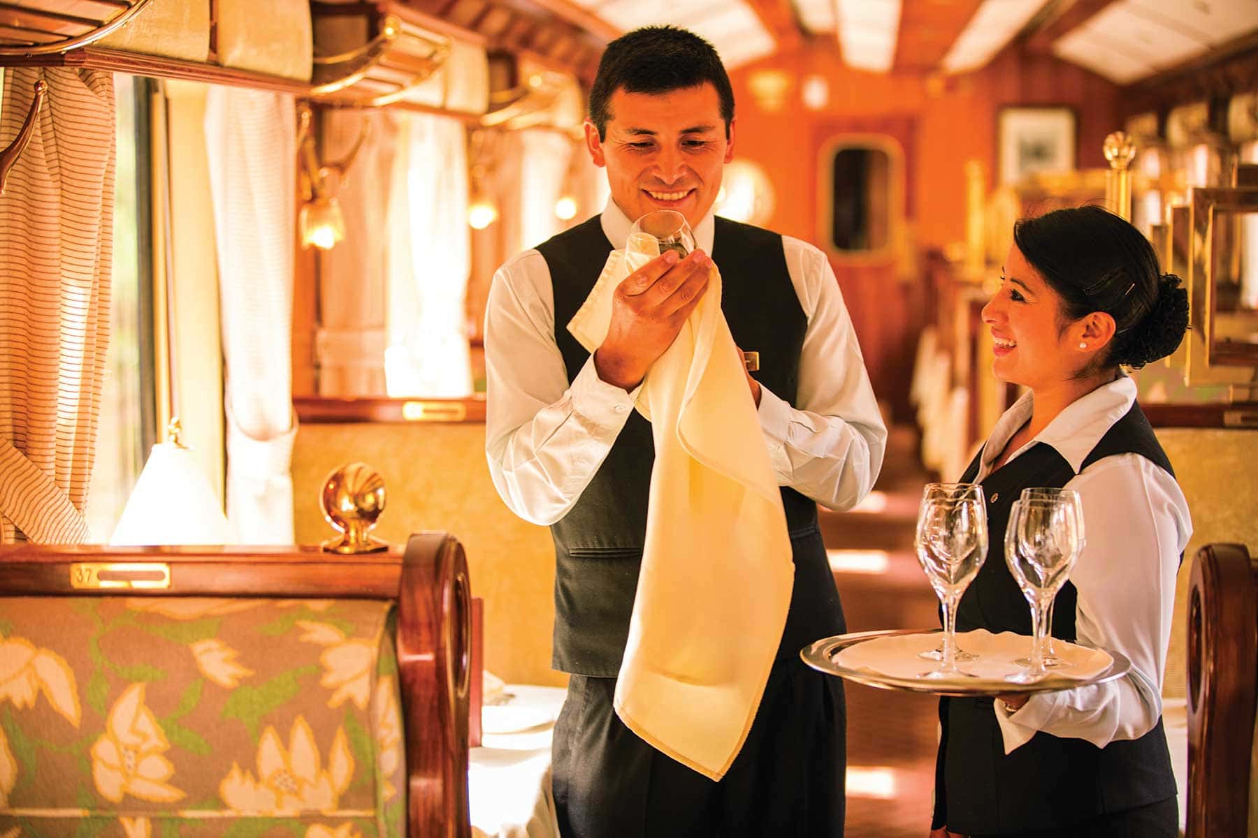 The train is named after the American academic, explorer and politician Hirham Bingham – born 1875, who rediscovered the Inca empire in Peru with its almost inaccessible location in the beautiful landscape and the Macchu Picchu mountain. You are greeted by a genuine and lovely warmth from the staff whose only task is to pamper you throughout the day trip from or to the city of Cusco. This is not a transport – it is an travel experience.